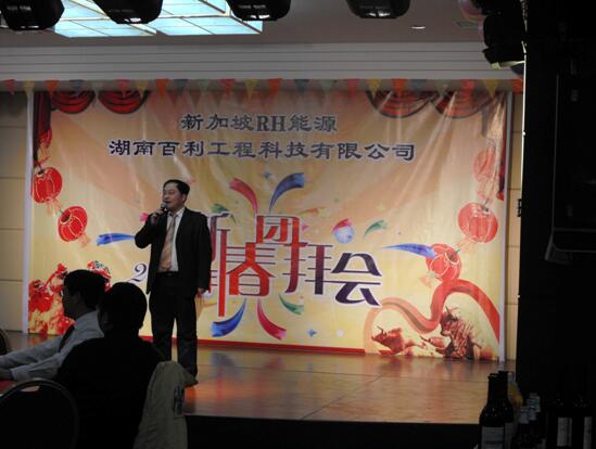 團拜會 在歡快的歌舞聲中拉開了序幕,“吉祥謠”、“好運來”、“和諧中國”等一個個精彩節(jié)目贏得在場員工們陣陣掌聲。會上公司總裁、黨委書記肖立明和新加坡RH 能源集團執(zhí)行董事王立言分別致新春賀辭和發(fā)表感言。我們堅信在新的一年里,在公司董事會、經(jīng)營班子領(lǐng)導(dǎo)下,在全體員工恪盡職守、辛勤工作下,百利的明天會 更美好!