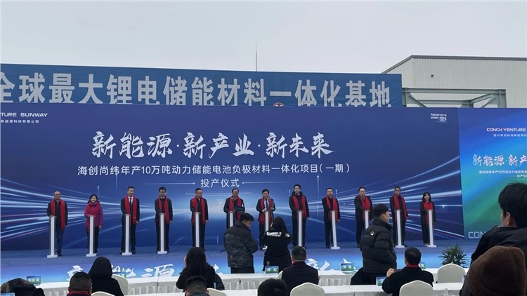 2024 年 12 月 18 日上午,海創(chuàng)尚緯年產(chǎn) 10 萬噸動力儲能電池負(fù)極材料一體化項目(一期)投產(chǎn)儀式圓滿落幕。眾多嘉賓見證這一新能源領(lǐng)域重要進展時刻,百利科技董事長王立言作為總包方代表出席。