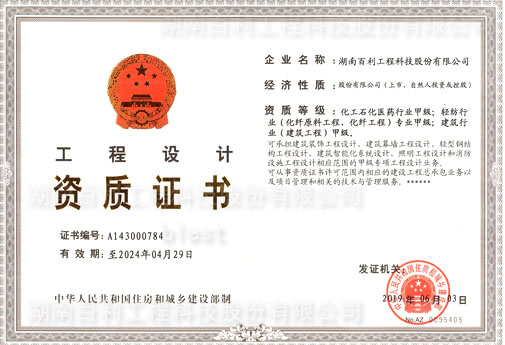 Class A Engineering Design Certificate for Chemical,Petrochemical, Pharmaceutical, Architecture & Building(Construction Engineering), Textile (Synthetic Fiber MaterialsEngineering, Synthetic Fiber Engineering) Industries